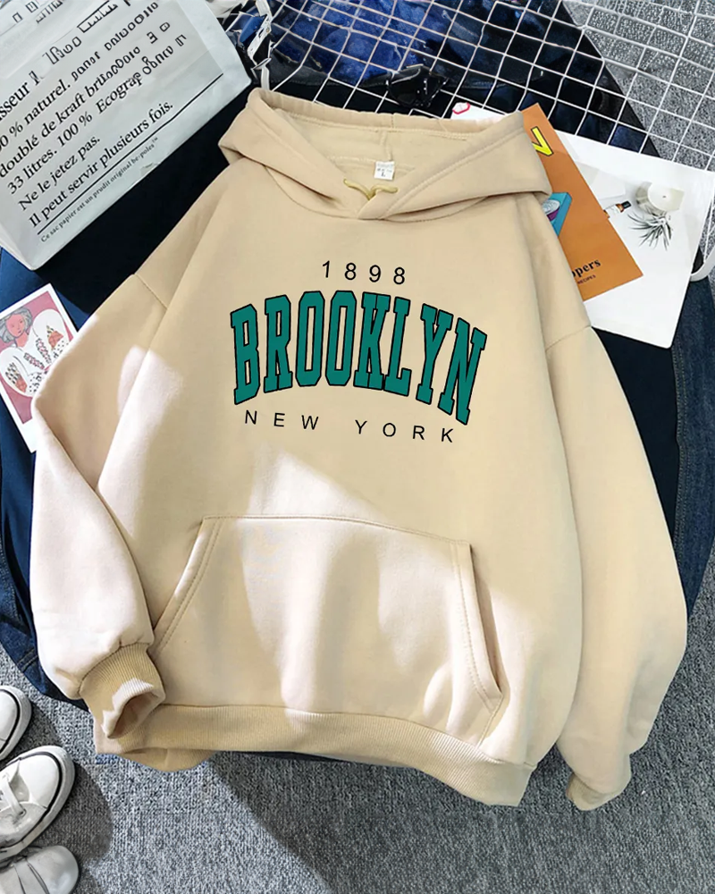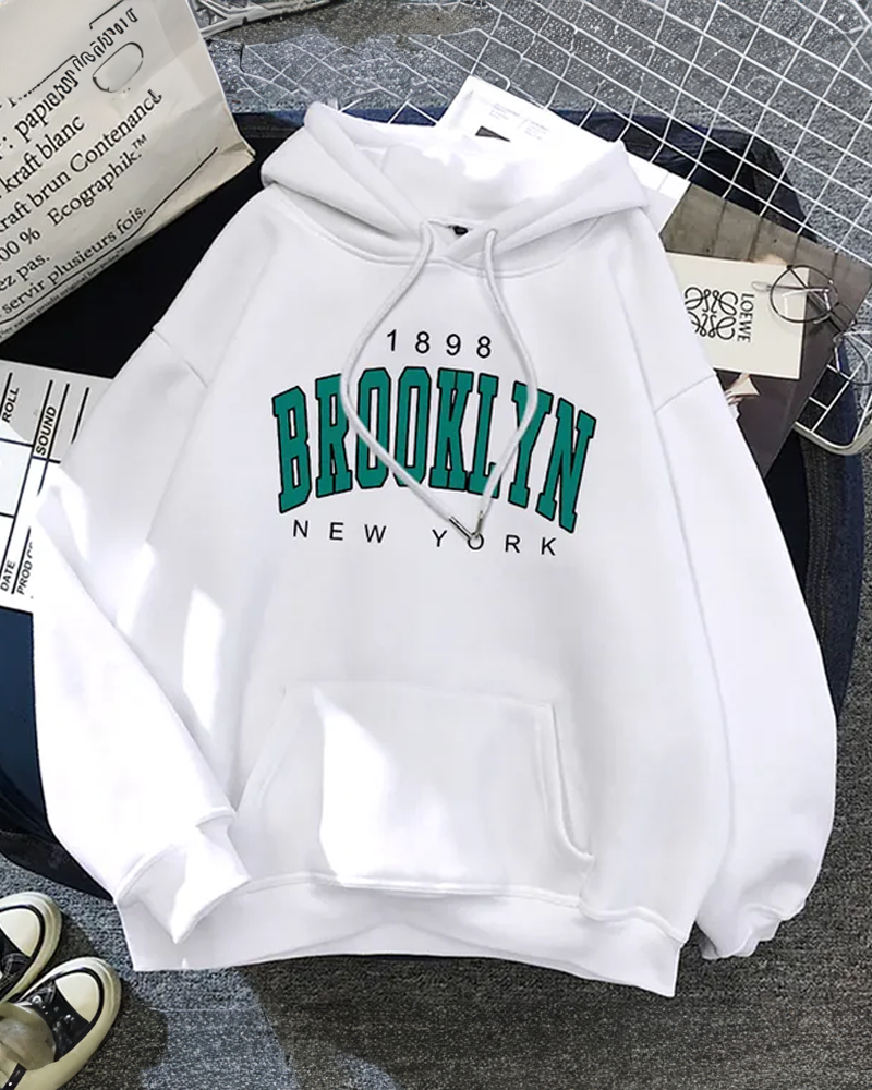 Notre Pull Brooklyn, fait d'un matériau de qualité, présente un imprimé Brooklyn, une capuche avec cordons de serrage et est disponible en 3 couleurs.